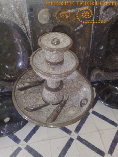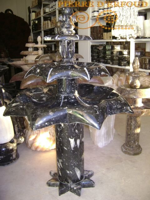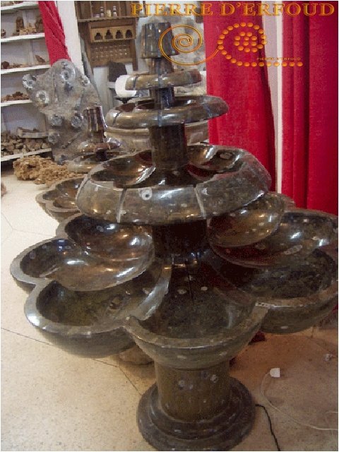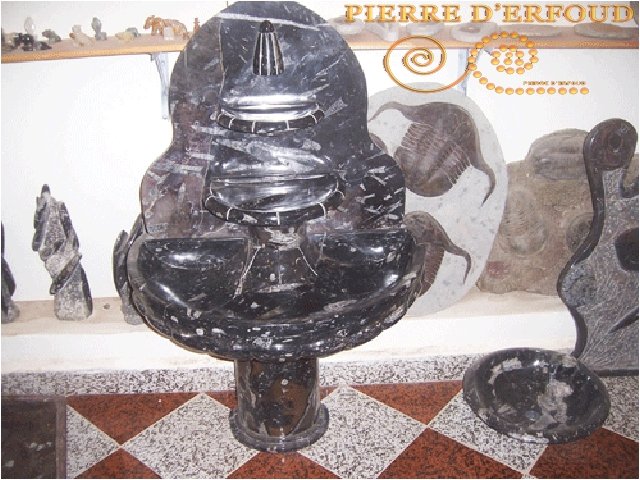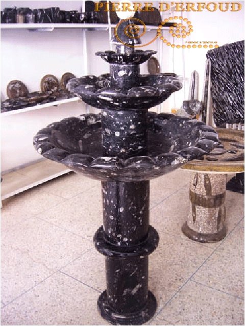 Fontaines en marbre fossilisé sculptées pour votre salon et votre jardin/paysage, la pierre d’Erfoud vous invite à découvrir notre gamme de fontaines en marbre noir et marron fossilisé. Les ammonites ressemblent aux escargots modernes (mollusques) et se distinguent par leurs corps en spirale. Les orthocères ressemblent aux calmars modernes avec un corps étroit et un bec ‘en forme de dent’. L’exosquelette dur des trilobites est divisé en trois segments distincts qui se fossiliseront bien. Ces créatures vivant au sol sont les ancêtres des insectes modernes, des araignées, des mille-pattes, des homards et des crabes.